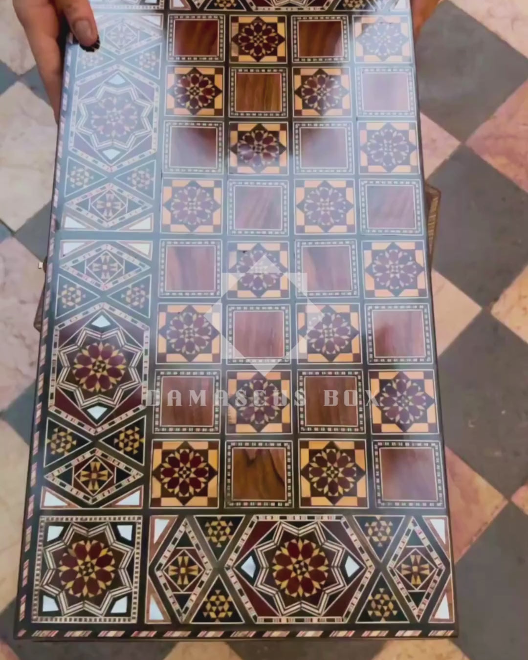 Completa il tuo tavolo da backgammon damasceno con questo elegante set di pedine bianche e nere, accompagnato da una coppia di dadi abbinati. Ogni pedina è liscia, perfettamente arrotondata e piacevole al tatto.