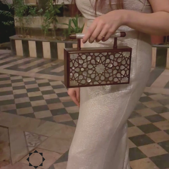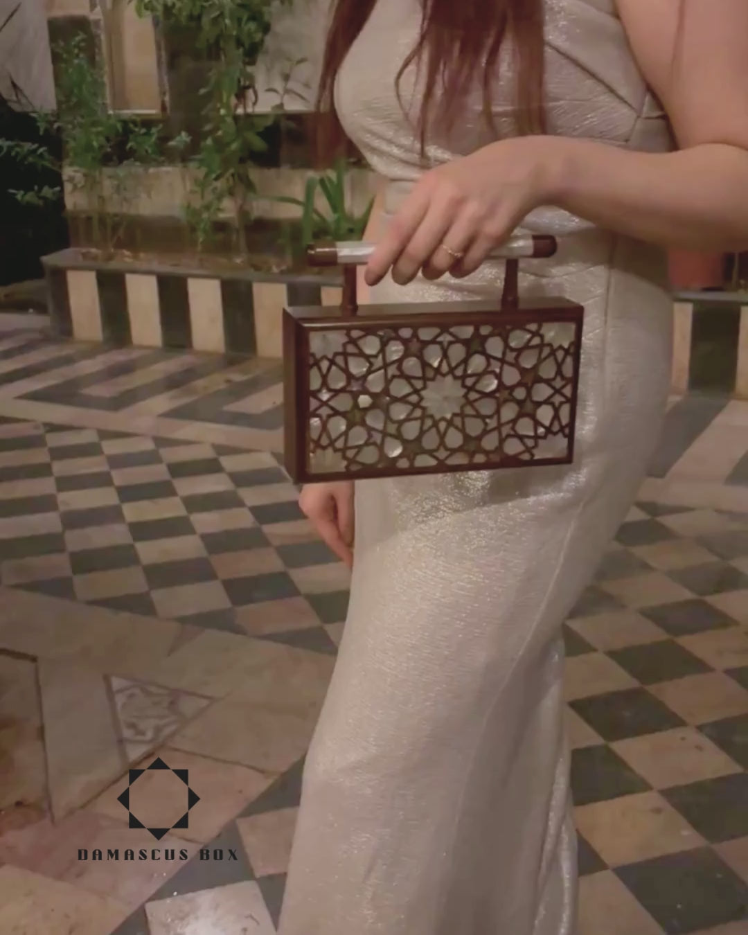 Ogni borsa è interamente realizzata a mano a Damasco, unendo arte antica e modernità.