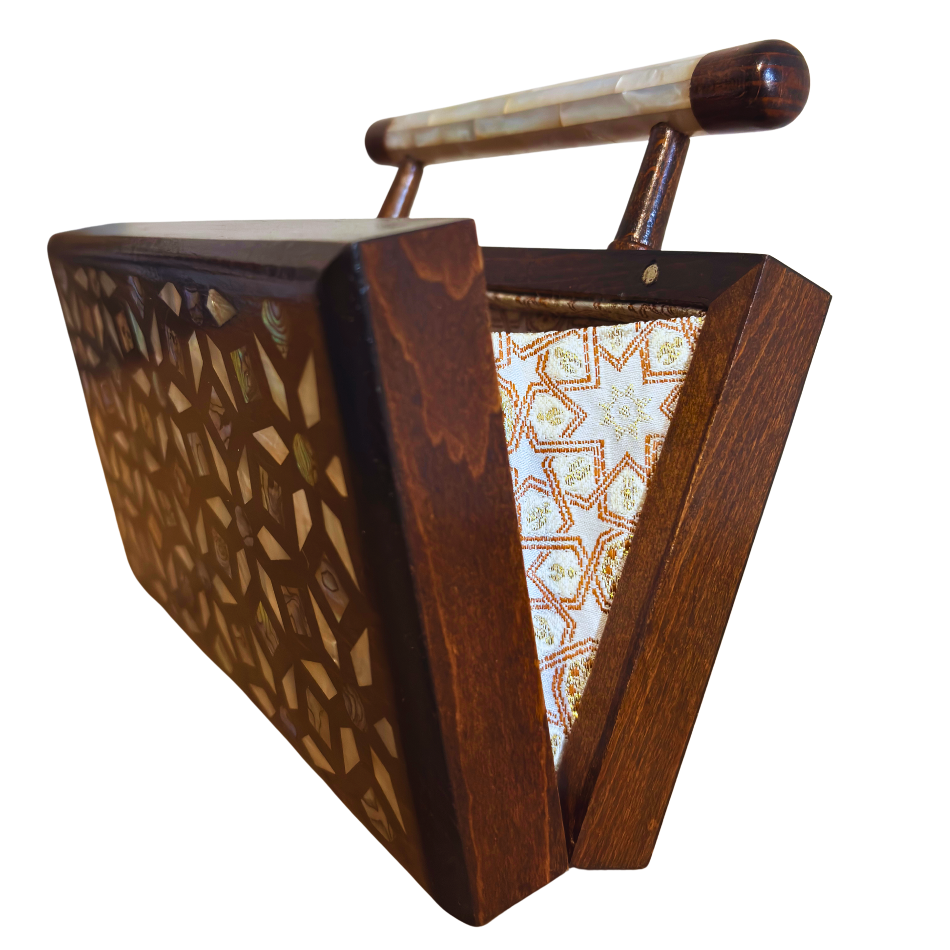 borsa damaschina, madreperla, geometrico, botanico, broccato, fatto a mano, Damascus Box