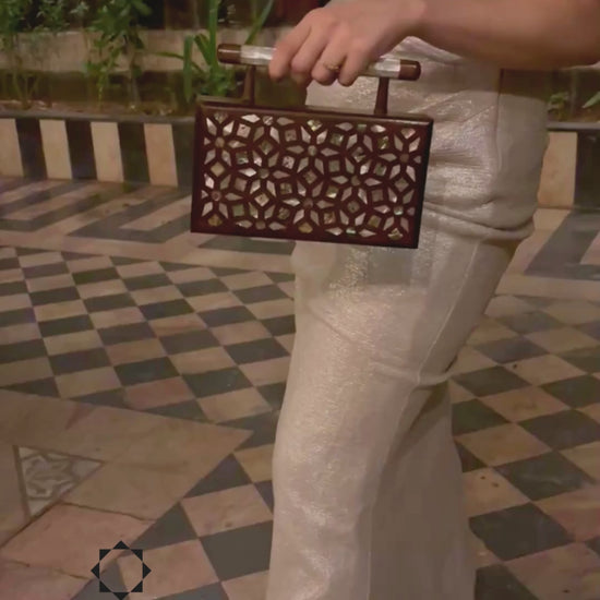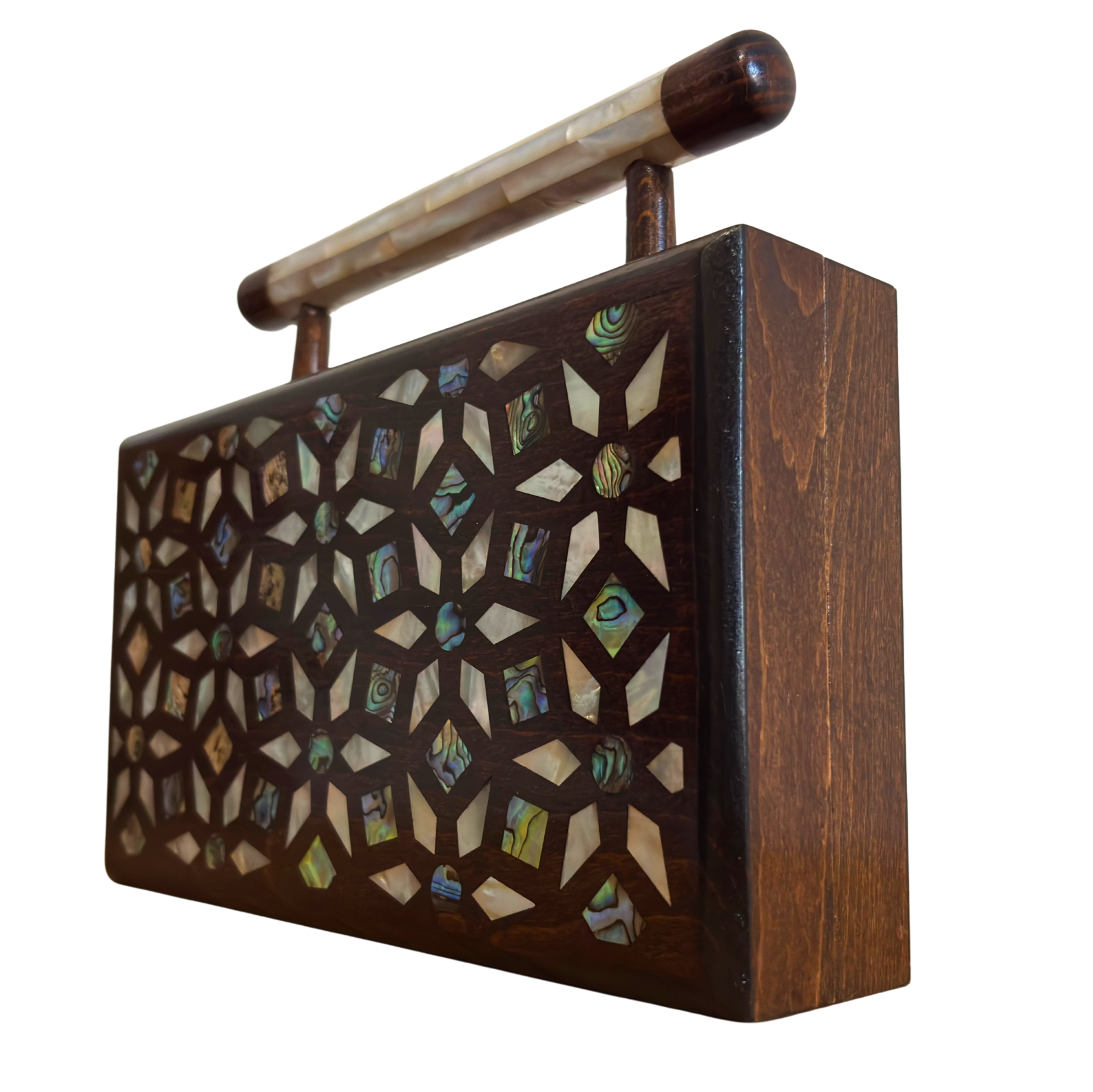 Il Giardino dei Segreti – Pochette Damaschina in Noce con Intarsi Geometrici e Botanici in Madreperla