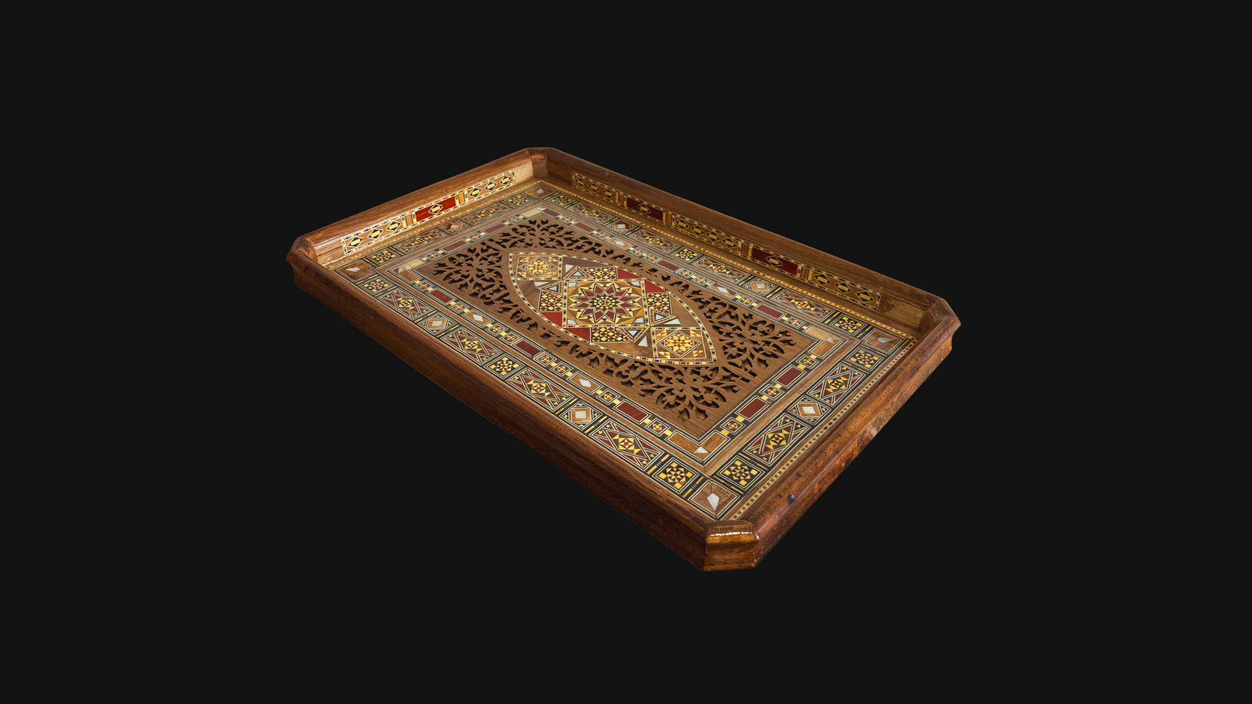 Damasceńska Mozaikowa Drewniana Taca – Masa Perłowa & Naturalne Kolory Drewna