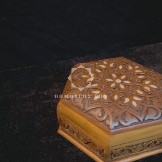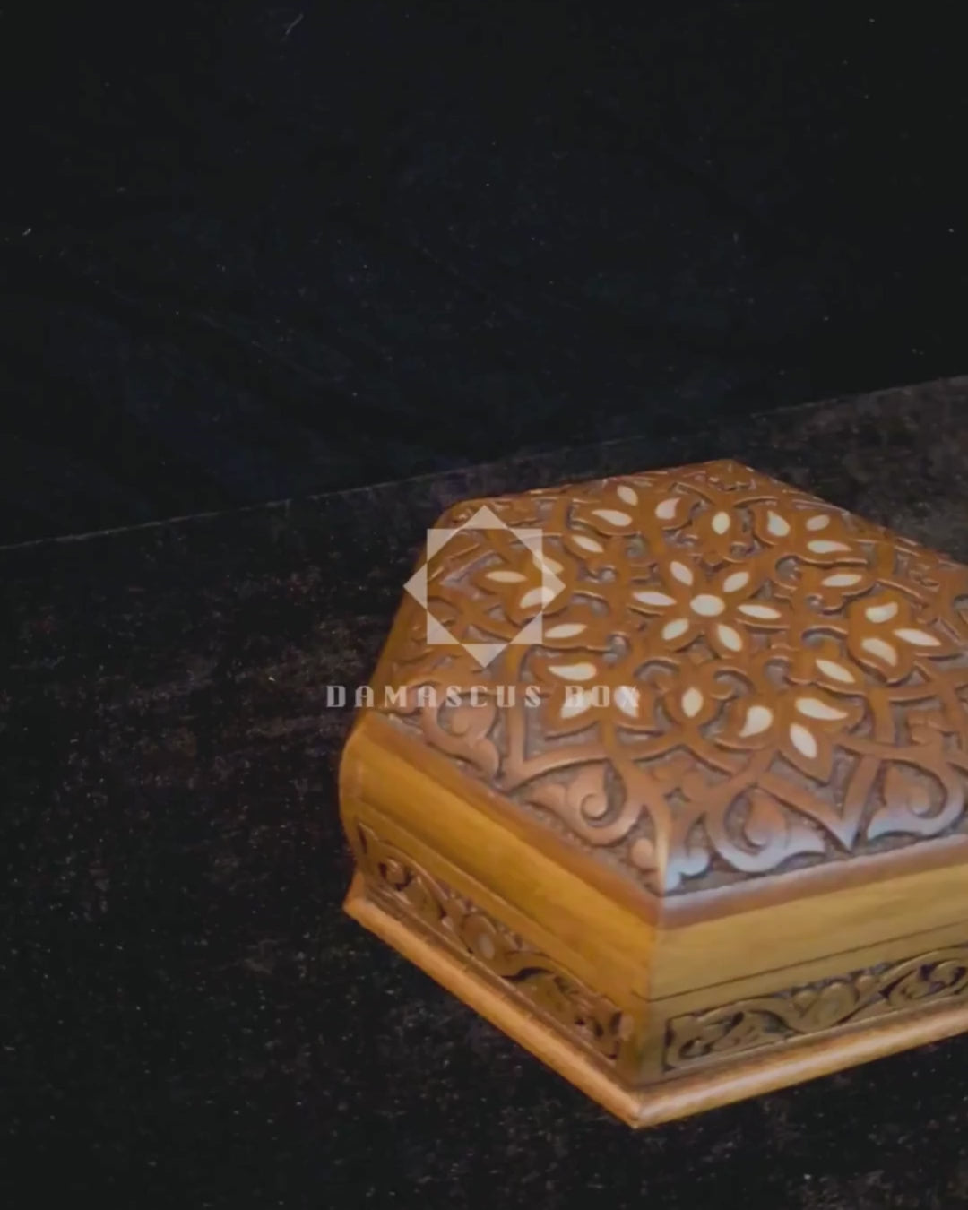 hand carved box, mother of pearl box, luxury wooden box, Damascus craftsmanship, oriental carved box, handmade gift, Damascus Box