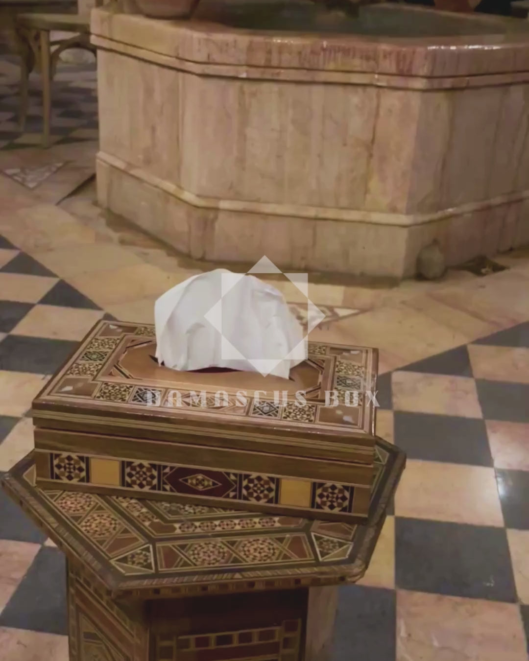 This exquisite handcrafted tissue box embodies the timeless artistry of Damascus mosaic work.